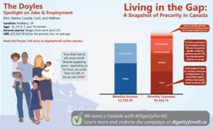 Together, we can work towards a poverty-free Canada! Check out our stories, share the infographics on social media, and add your voice to over 12,000 individuals, organizations, and government representatives who support the Dignity For All model anti-poverty plan.