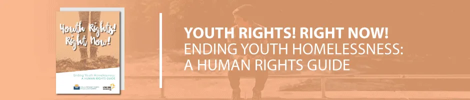 Learn more by clicking on the image below to read Youth Rights! Right Now! Ending Youth Homelessness: A Human Rights Guide.